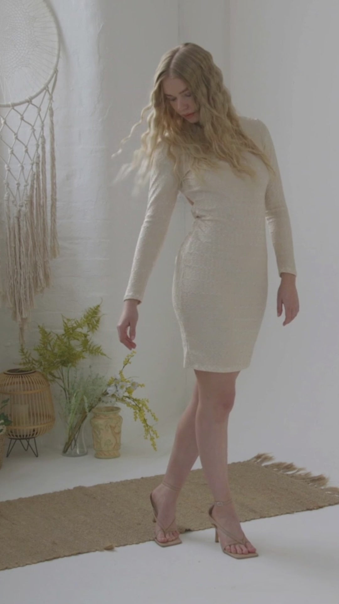 The Morena ivory lace backless dress is a Sarvin signature piece, designed to make a lasting impression at glamorous evening occasions. Crafted from a second-skin lace fabric, this knee-length bodycon silhouette hugs the figure for a flattering fit. Featuring a high neckline with a concealed hook-and-eye fastening, long sleeves, and a daring open-back with twisted knot detail, Morena perfectly balances sophistication with allure. Also available in classic black.