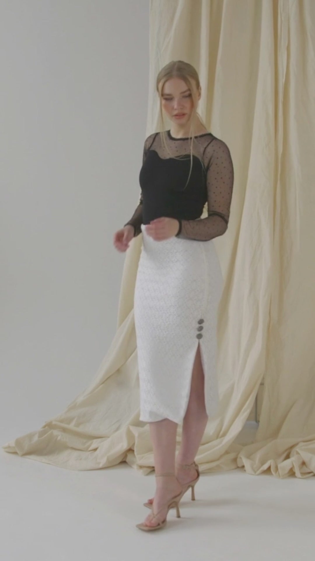 Indéniablement féminin avec un décolleté en cœur sous un body en maille transparente à pois. Notre body Diana fait à la main est une merveille polyvalente à associer avec vos essentiels de garde-robe préférés. Modèle à pois noirs pailletés avec manches longues et encolure en dentelle.